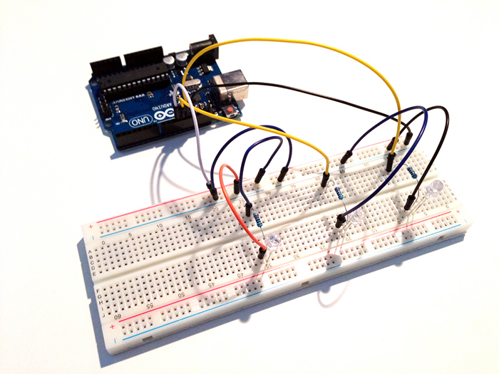 Flashes three LEDs back and forth. A good project for both beginners and kids.