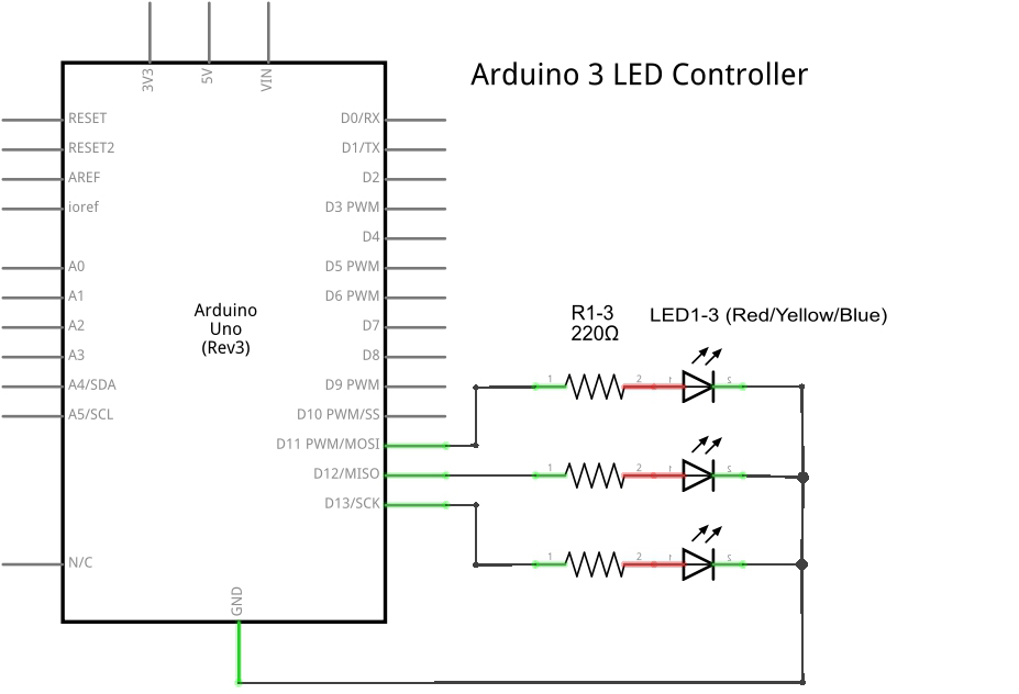 Three LED Controller 1.0.0 [Schematic] - 1.0.0 (Arduino)